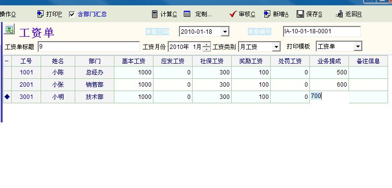 下面是月工资单