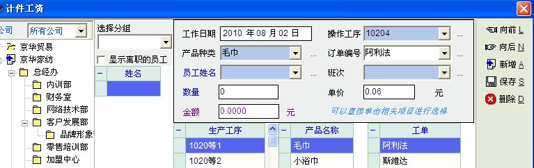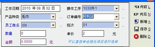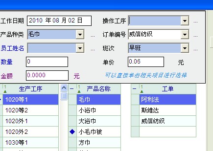 这个软件的计件工资确实是个薄弱环节!工序的选择太麻烦了,工序应该和产品关联起来!虽然工序可以以产品为单位分类别,但是在选择时不能以类别调出!记录时是有点麻烦!