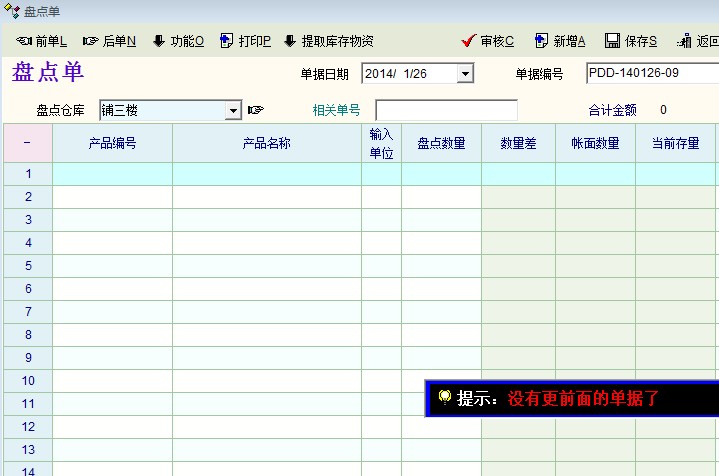 盘点单中的前单、后单键失效,无法通过前单、后单查询其它单据
