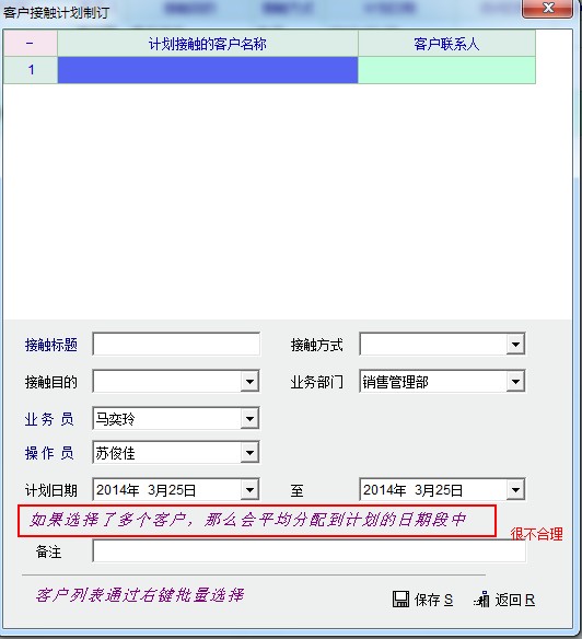 性的接触计划,在系统现有的功能中只能做完一次再重新制定一次,太费劲、太低效!