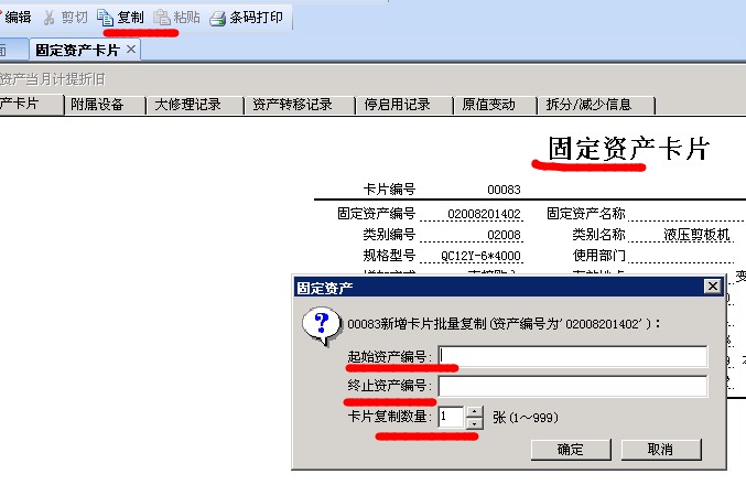 固定资产增加能否 可实现复制功能(相同设备名称)