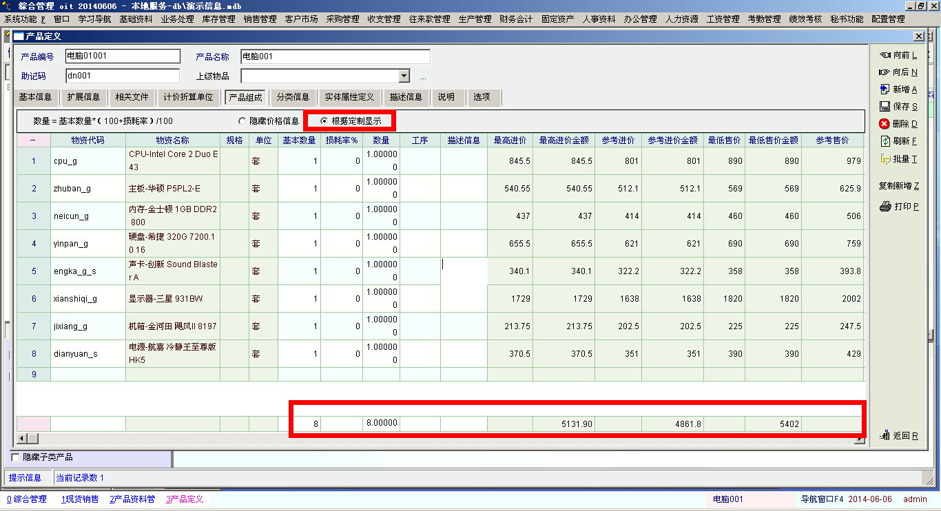 企业内某个零件是另外几个零件组成的,如何选中某个零件,其他几个零件的价格和数量就形成了。