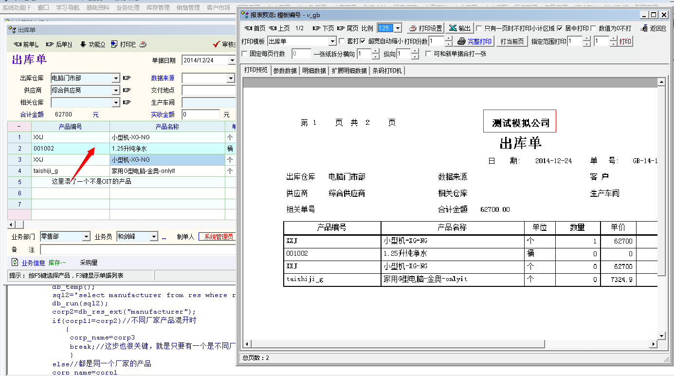 某个体批发商代理了两个或者多个厂家的产品,当开发商超业务时由厂家提供增值税发票,该批发商配送货物而配送单据开出的表头必须是某类产品的生产厂家。当开立单据的时候,某类产品是A厂家的,另外的是B厂家的,对方需要开A厂家或者B厂家的表头单据时就必须是A或者B的单据,如果是两类产品混开单据表头则是代理商的名称。也就是根据不同的产品在打印的时候自动修改单据表头的公司名称。