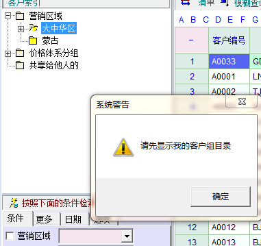 不知是何原因,客户索引处,“我的客户组”没有显示,现在要修改客索引,系统就提示“请先显示我的客户组目录”,这个要如何操作才可以显示?