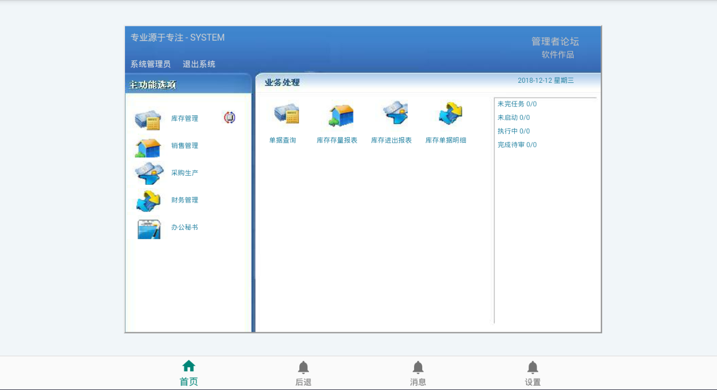 老师 我用的是综合系统,APP登录进入传统入口后,只显示一个库存管理,销售管理,采购生产,财务管理,办公秘书,也没有切换按钮,