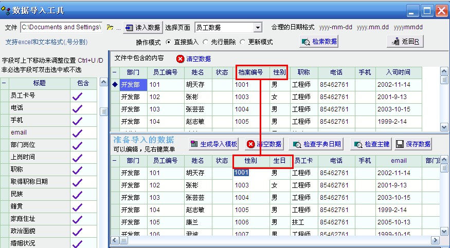 可是我把”部门、员工编号、姓名、状态4“按原模版表格顺序来做了,其余项目按我需要的顺序来放,为什么软件还是按固有顺序去认定呢??导入模版究竟是否要完全按照你们的,不能改动顺序,名称?