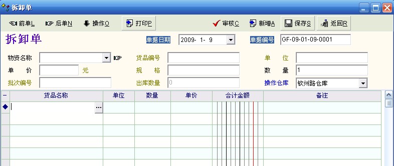 我的库存管理软件,在拆卸单中,无法输入物资名称,在我的产品资料中已经输入产品资料,怎么无法显示?如图