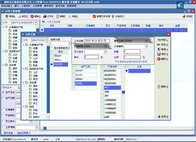 如图中的计件环节,就是在操作工序和产品种类输入问题。第一不能直接输入动检索,东西多了就找起来很麻烦。。。另一个就是...,这两项后面点开后不像员工姓名一样能双击选择的。。。感觉这里比较麻烦。还是可以设置的?麻烦有知道的指教下下,谢谢