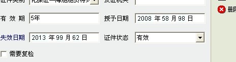 员工证照管理中的时间格式,月份可以录入大于12的,日子可以录入大于31的数字,显然是不符合常理的,应加以限制。(图片1)