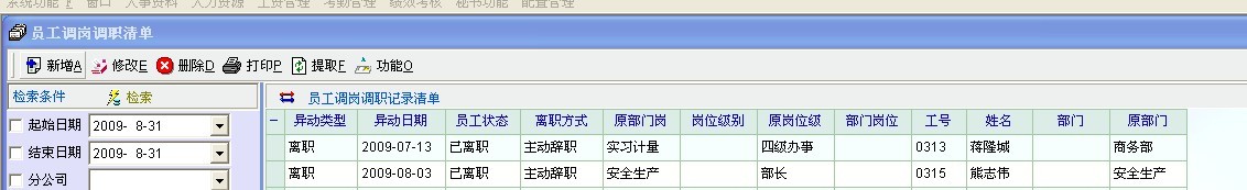 自2009/8/26升级后,员工调动的功能不如以前了。