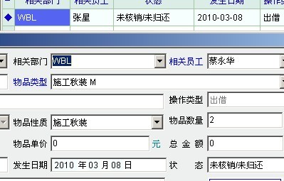 上面的是原记录,下面是打开时的的状态,显示的都是员工原部门,但是员工名字不对,如果这时有物品核销做了状态修改时,就必须重新选择编辑状态下的员工,否则保存时的数据就不对,一不小心就可能把错误的数据保存了,请问这个问题能解决吗?