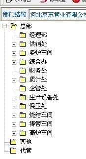 二、点击打开员工资料的时候界面左上角所显示的“部门结构”总是展开状态的,一旦部门比较多的时候,查找起来不方便,如图1: