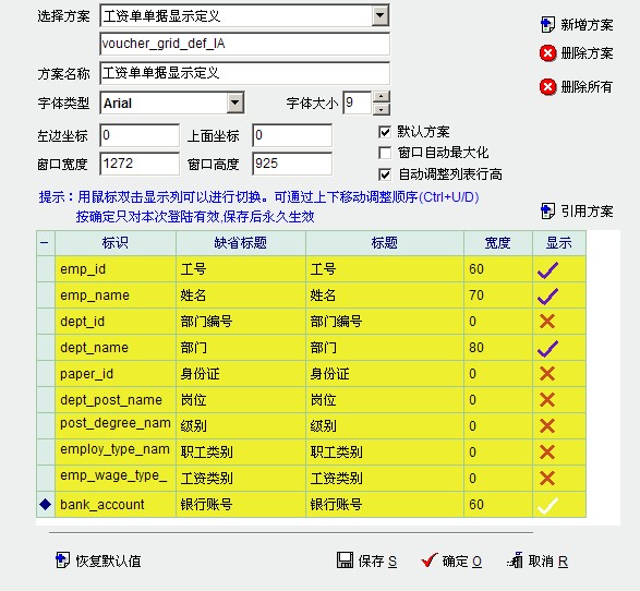 现在请教如何在 工资单中 自定义显示 银行账号2呢? 已经 在定制显示(图3)里面 找了 没有这个选项。