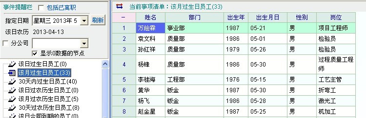 员工生日提醒
