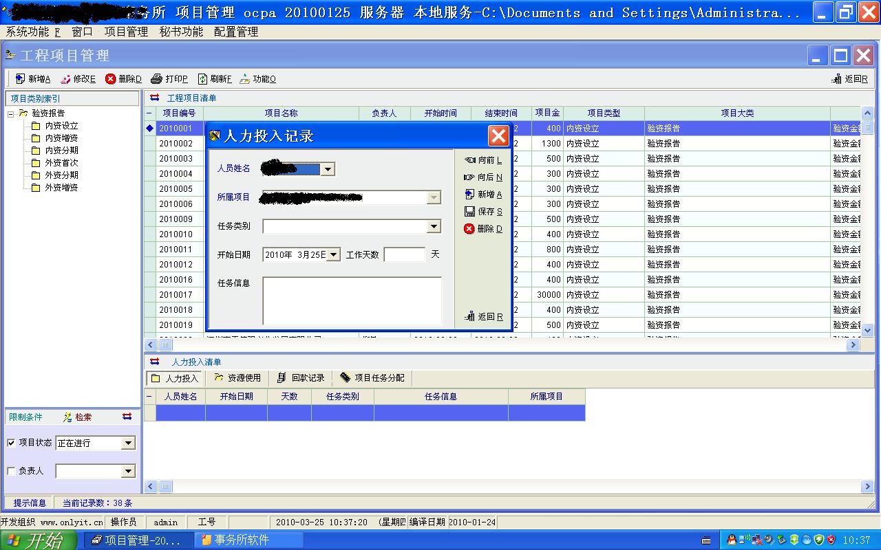 记录各项目的人力投入、资源使用、回款情况。便于合理安排人员任务...。