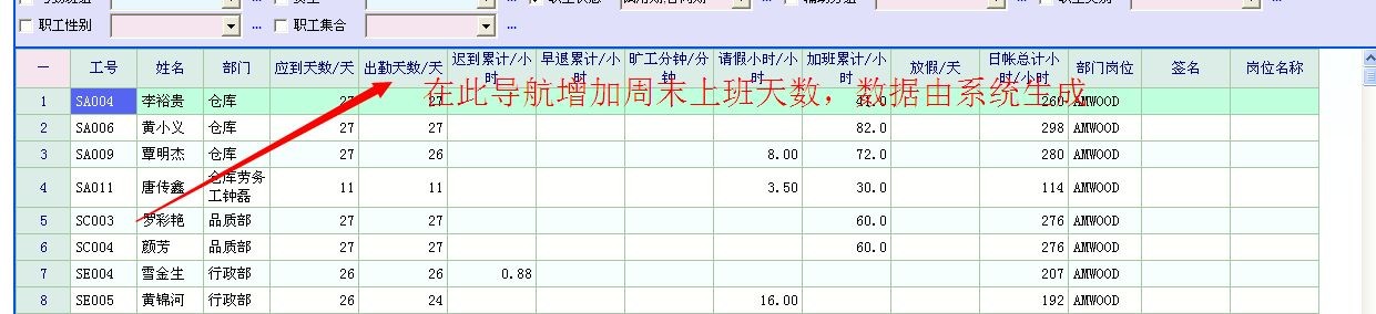 月帐员工汇总报表  可不可以添加显示周末上班周末上班天数,某些企业需要用到此功能(例如我公司,普通员工是22天制周六日算加班,管理层是拿月薪26天制,财务需要这个功能辨别)