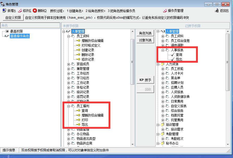 以“员工福利”为例,在普通角色中设置:不可查询员工福利,可以查询统计报表。但是统计报表就包含了福利报表啊,这样的话不让普通角色查看员工福利的目的就没法实现了,所以建议把逻辑修改成:员工福利没有查询权限的,即使有统计报表查询的权限也不能查看