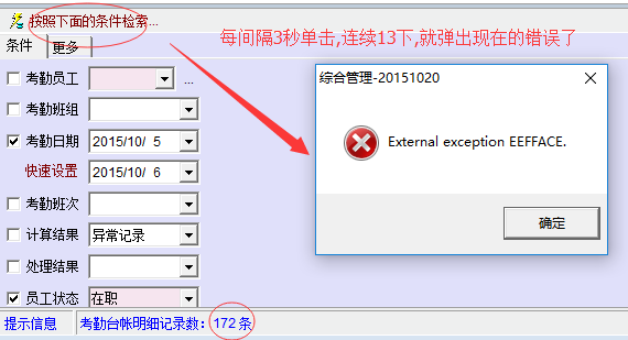 每间隔3秒单击,连续13下,就弹出现在的错误了