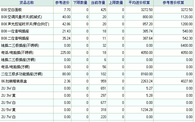 节能灯的平均进价核算都变成了0
