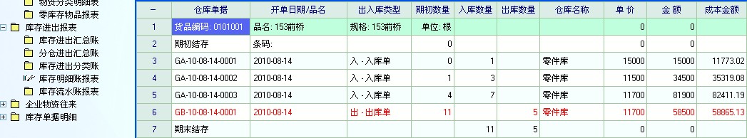 显示本期入库数量 9     入库金额 110500元----》完全正确