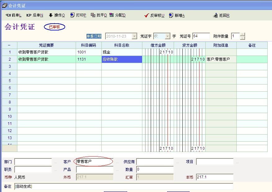设置凭证摘要为“收到[客户]货款”,此时的中括号中的客户会自动读取图2中所圈红部份的值,以简化凭证摘要的书写。。。