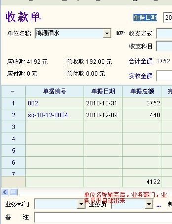 1.填制收款单时,输入客户名称后,下边对应的业务部门,业务员不自动出来,显得不大合理。而不应理解为输入:财务人员的业务部门,业务员。财务人员有制单人,审核人了。谢谢。