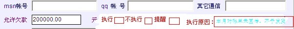 建议老师们再辛苦一下,将该功能嫁移到客户管理中,在允许欠款的后面增加“不处理”、“提示”、“不允许保存存”三个选项,然后再增设一个提示内容输入框,便于财务部直接将该客户设置成“不允许保存”的理由标明(不一定是因为超过授信额度的单一原因,有可能是不配合对帐啊,不配合回款、开票等其他事因),。。。。