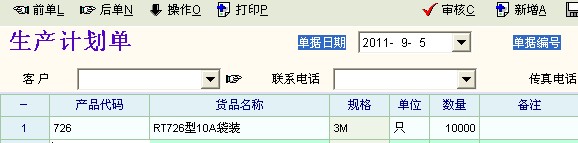 \  生产计划单