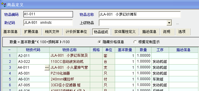 在基本资料物品组成里,建议新增物品明细时把所选物品默认排在鼠标所指下边,请老师考虑该建议,谢谢!(现在新增物品是在最底下)。