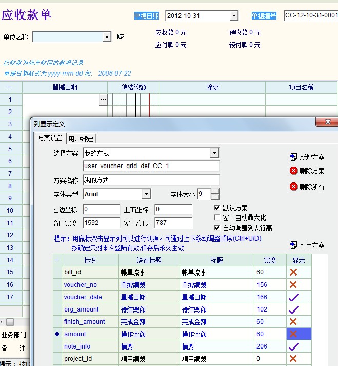 应收款单我这里可以显示定制的啊。