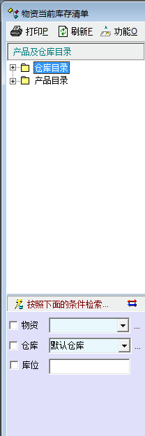 物资当前库存清单中"按照下面的条件检索"按钮不起作用。