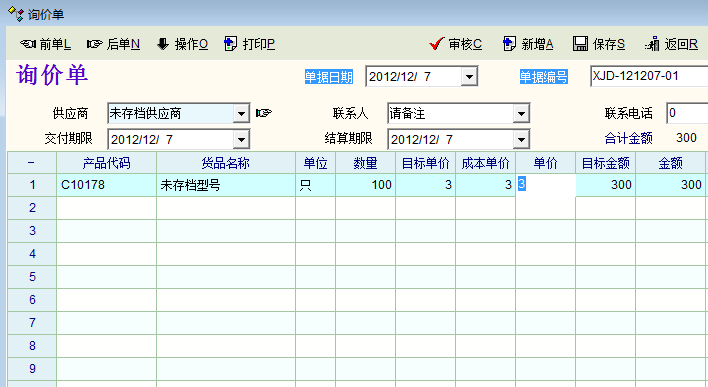 我觉得询价单与报价单应该有三个单价跟金额:我方报价(目标单价),客户报价或供应商报价,经协商后达成的成交价,再分别对应三个金额。这样就比较清淅实用,也比较符合流程。