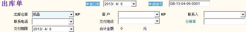 我做了出库单,单据表头有交付地点项,联系人,联系电话项。