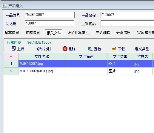 如果只是修改描述的话,在产品定义中,如果想下载这两文件:MJE13007.JPG,MJE13007(MOT).JPG,保存到别的地方的话,描述就失去了作用。下载的文件名还是MJE13007.JPG,MJE13007(MOT).JPG。