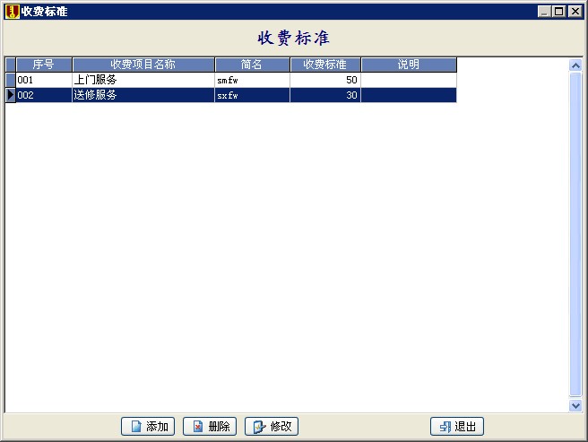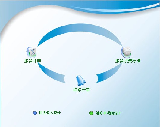 服务开单,维修开单,服务收费标准,服务收入统计,维修单明细统计。