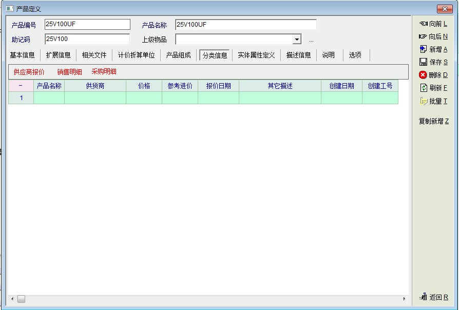 如图,建议老师在产品定义》分类信息中增加查询该产品销售明细及采购明细的信息,现实中经常需要查询某一产品的销售及采购明细,虽然销售报表及采购报表可以查询得到,但始终太麻烦。