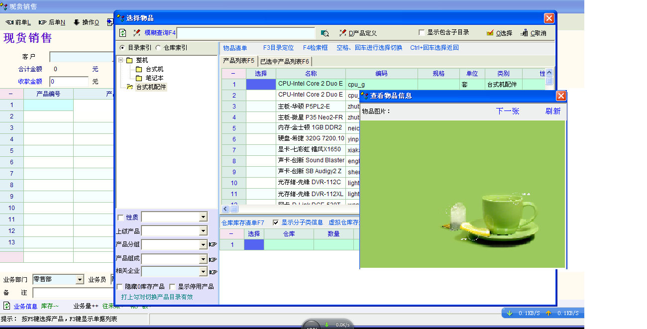希望单据的货品选择窗口,在鼠标悬停时可以显示货品资料的窗口
