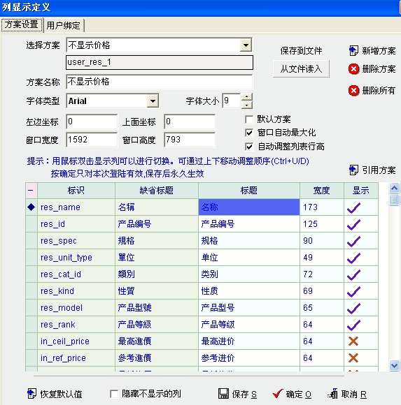第二图是以用户名进入后,产品资料列表的列定义中的显示方案,与用户绑定不符