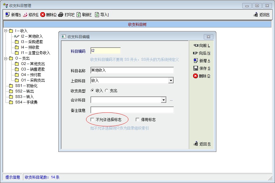 图2:收支科目设置