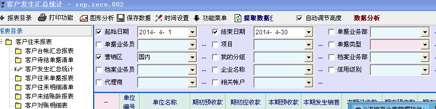 如果我选择当 客户发生业务汇总统计 这项,选择了时间是:4.1--4.30号,但只会显示有发生过业务的客户出来,如:图片1