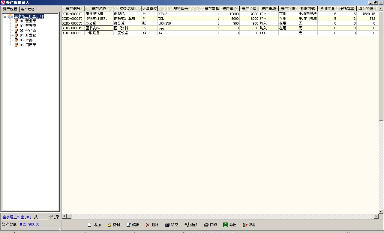 这个软件默认是按资产类别查询对应的资产清单,如果要查询某个部门或者某个公司的话,需要输入条件进行选择。看我们这个软件能否直接显示部门列表,然后用户点击某个部门,右边的窗口就直接显示该部门所有资产。