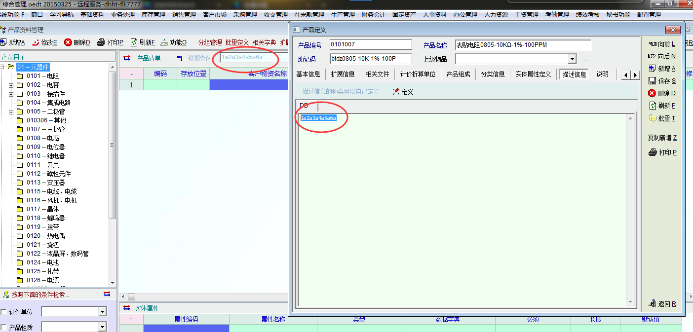 产品定义----描述信息中的内容无法在产品资料中检索出来