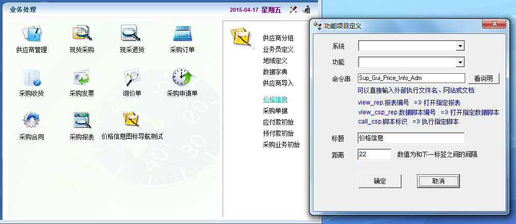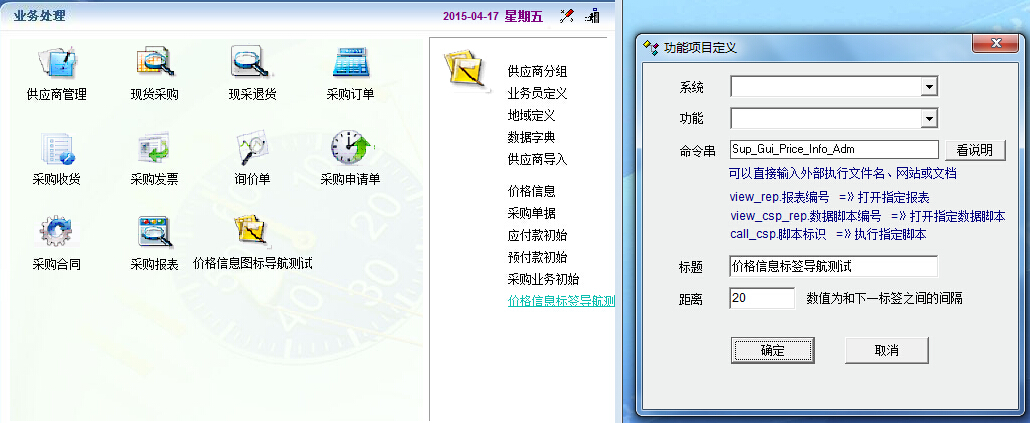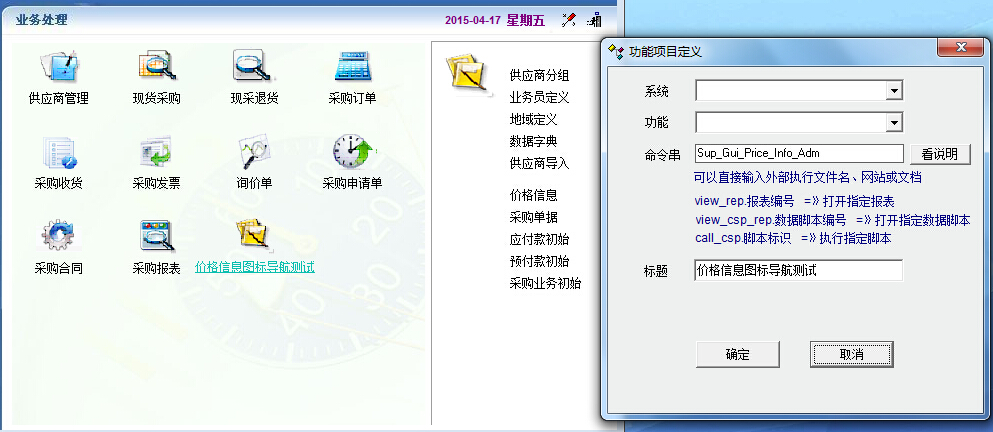 在采购管理的标签导航中的价格信息,我想把它制作显示到图标导航中,操作后功能无反映。有命令串Sup_Gui_Price_Info_Adm,没有系统/功能项。问题?