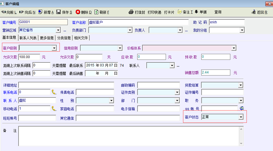 1、可以自定义客户信息中,哪些信息是必填的。像我们强制要求客户级别及客户状态、客户来源,发货方式(自定义客户属性),销售渠道(自定义客户属性)都是必填的,但员工经常经常漏填,很是烦人!