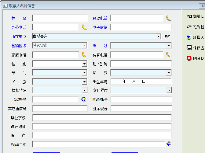 现在的企业人员流动性非常大,对于已经离职的联系人也不能将其资料一删了之,所以非常有必要增加联系人是否在职的信息,建议在系统中增加此功能。