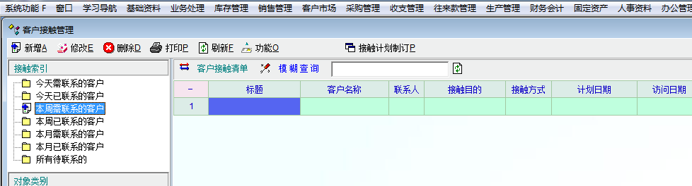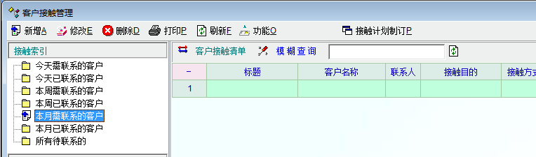如图1,通过客户接触管理中的接触计划制订功能制订了一个接触计划(计划两天后触发),但制定后在接触检索中发现在“本周需要联系的客户”与“本月需要联系的客户”都找不到该接触计划,如图2。