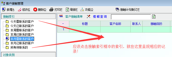 应该点击接触索引框中的索引,就在这里呈现相应的记录!