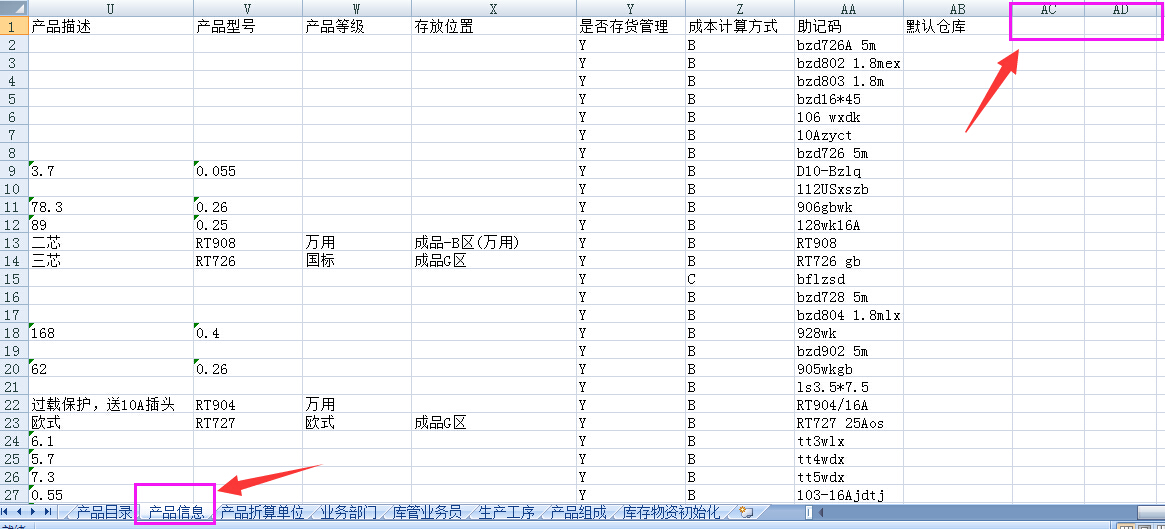库存资料导入,按导入格式生成文件导出来的资料信息没有扩展后内容,导致重新建帐套时资料不全,如下图: