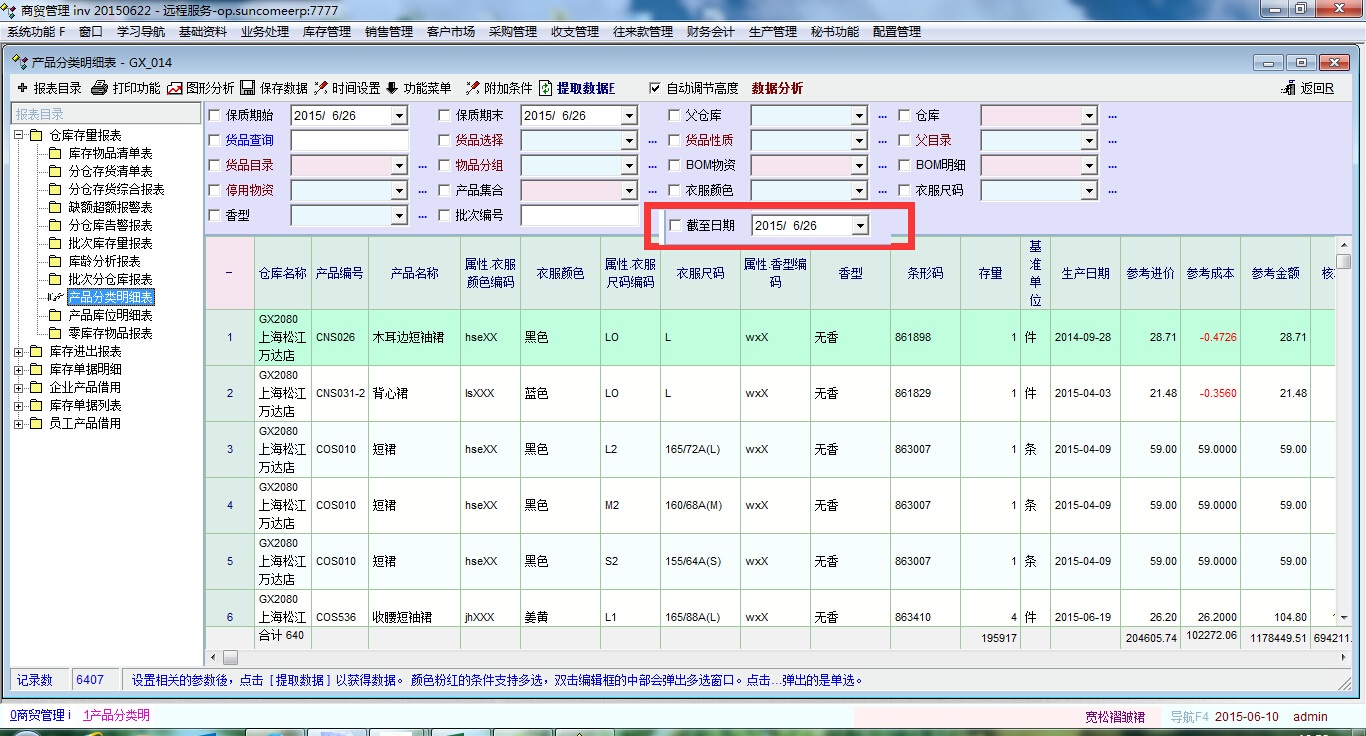 上一版更新时已在库存报表中存量报表(005 006 018)增加截至日期检索条件,能否进一步在“产品分类明细表”、“产品库位明细表”、“零库存物品报表”加入此检索条件。加入后效果如下图: