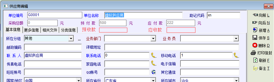 如图,系统现在在客户管理中只显示客户的应收款及预收款信息,但如果该客户同时也是供应商,那么他同时也可能存在应付款与预付款。针对这种情况,建议在客户管理中添加、显示应付款与预付款信息,在供应商管理中添加、显示应收款及预收款信息。